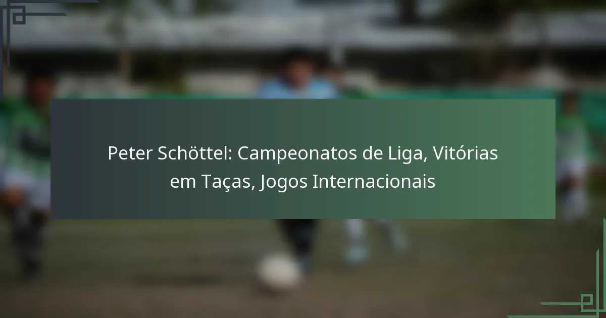 A carreira futebolística de Peter Schöttel é marcada por conquistas significativas, incluindo múltiplos campeonatos de liga, vitórias em taças e jogos internacionais que demonstram o seu talento e impacto no desporto. As suas contribuições tanto como jogador como treinador deixaram um legado duradouro no futebol.
